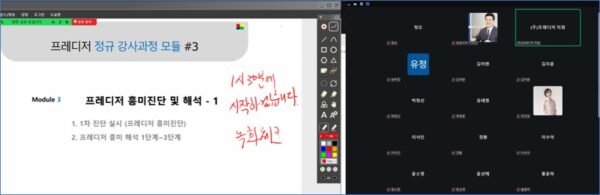 단점으로는 아무래도 참여자 분들끼리의 의사소통이나 공유되는 부분은 떨어질 수 있습니다. 이 부분을 커버하기 위해서 많은 경험을 갖고 다양한 형태로 강의를 합니다.