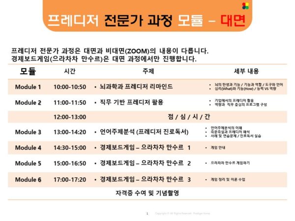 <프레디저 전문가 과정>은 7월과 12월에 진행합니다. (1년 2회)